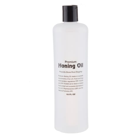 This TableCraft premium honing oil will protect the surface of the stones and prevents them from being clogged with metal particles from your knife.