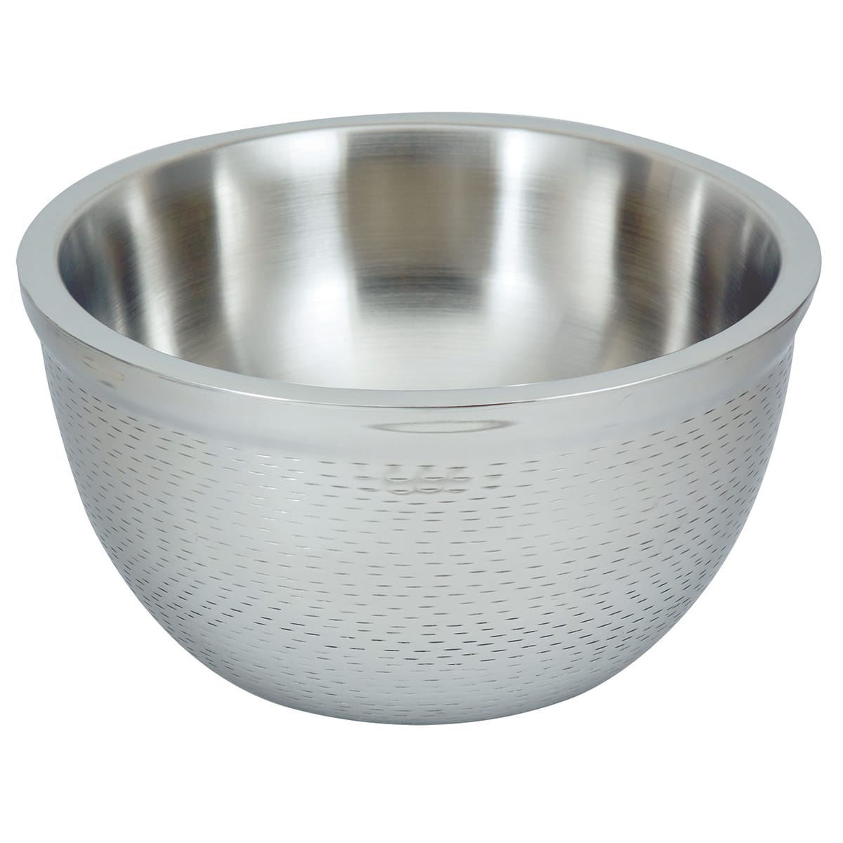 This 5 quart bowl from TableCraft is part of the Remington Collection and features a distinctive rice pattern that will add a touch of class. This bowl also features double wall stainless steel construction and is perfect for restaurants or banquet facilities. Hand washing is recommended.