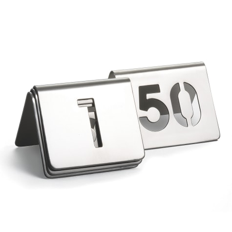 These number tents are stainless steel with cut out numbers. Set includes numbers 1‐50.