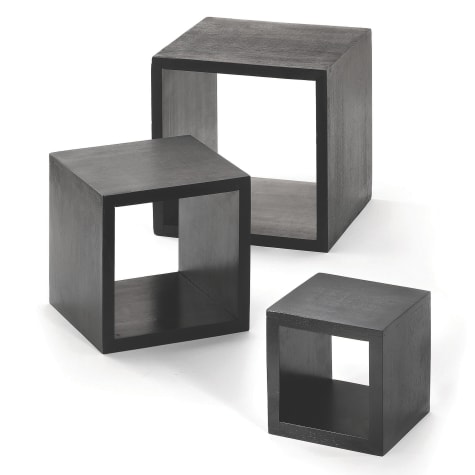 Design dazzling, multi‐level food displays at your buffet, restaurant, or catered events with this beautiful black wood TableCraft WBK3 three piece square riser set. The TableCraft WBK3 three piece black wood riser set is perfect for drawing customer attention to hors d'oeuvers, sides, or even featured dishes and daily specials. The set includes 16 slip resistant sleeves to help prevent the risers from sliding on tabletops. Hand wash only.