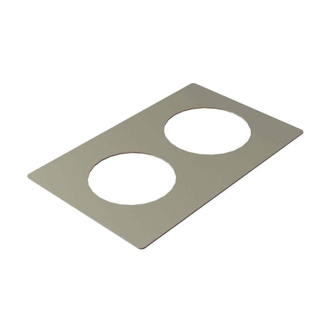 This hot food template from TableCraft is designed to fit standard 12" x 20" wells, measuring 13.5" x 21.625". Crafted from durable stainless steel with a brushed finish, it accommodates temperatures up to 450°F, ensuring food stays hot longer. This template is precision cut to fit one CW7004 pan and one CW7006 pan, making it ideal for buffet and catering setups. Additionally, it is dishwasher safe, providing easy maintenance and convenience.