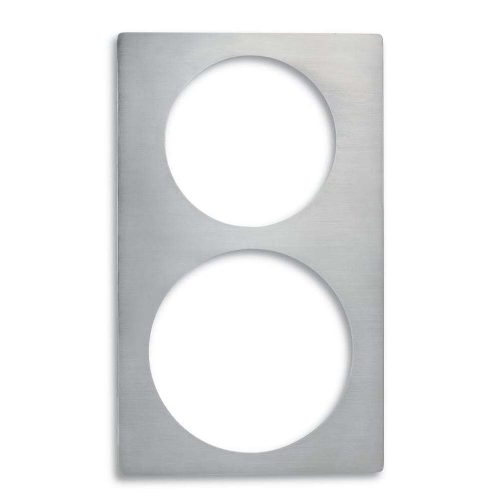 This stainless steel single size template from Vollrath® is for use with Miramar® display cookware (sold separately). This 21.13" x 12.75" template has one large and one small round cutout.
