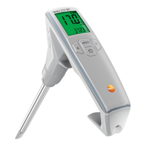 This cooking oil tester allows you to reliably optimize the use of cooking oil to save costs and ensure brand protection. The Testo 270 cooking oil tester quickly, easily, and reliably determines cooking oil quality. The new Testo 270 cooking oil tester stands out thanks to its ergonomic design, which protects the hand from direct exposure to hot oil. The clear alarm via the colored backlit display makes it even easier to evaluate the cooking oil quality: Green means the TPM content is OK. Orange: TPM value is borderline. Red: Your TPM limit has been exceeded.