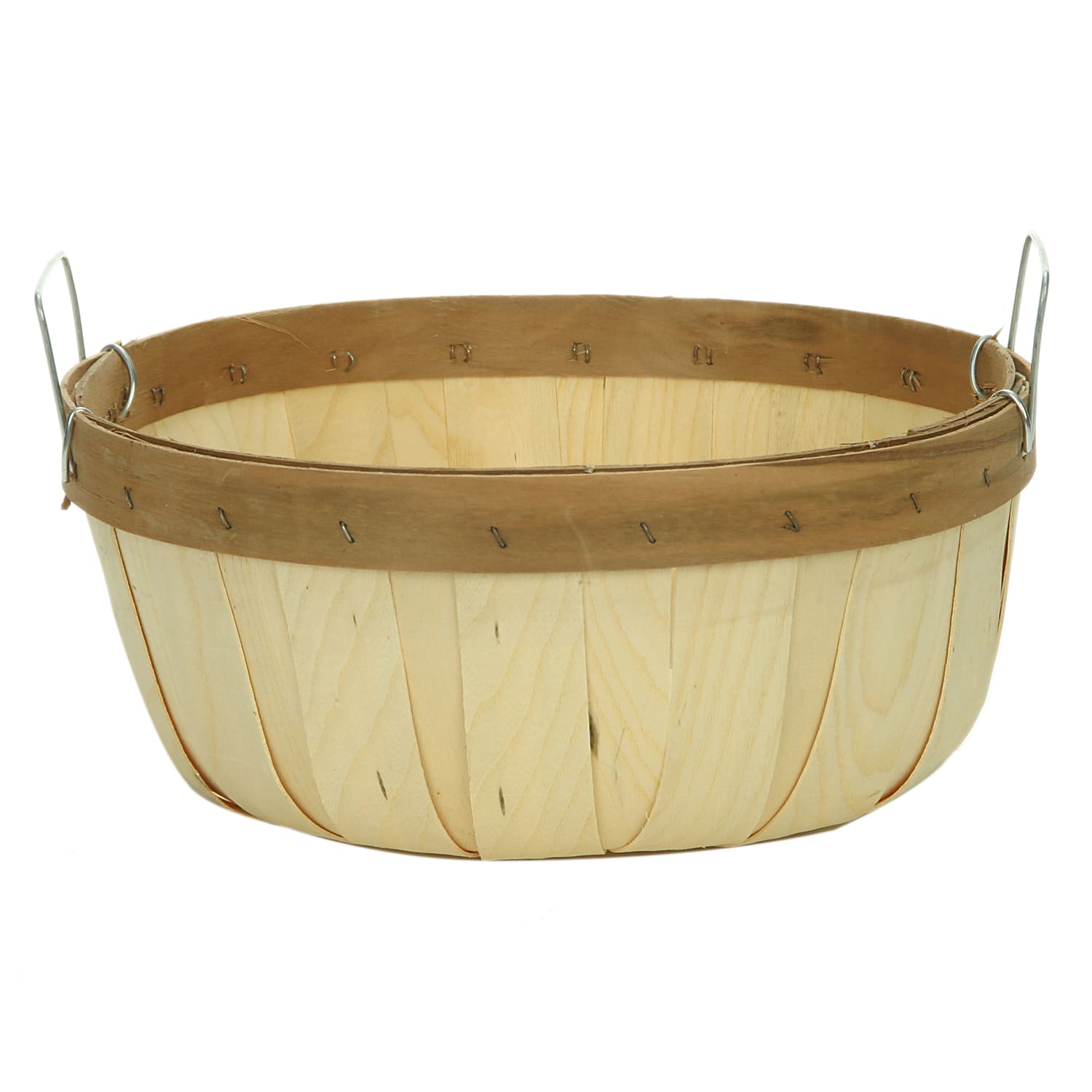 This Texas Basket Half Bushel Basket is made from soft hardwood and has a round bottom design. It also includes handles for easy carrying.