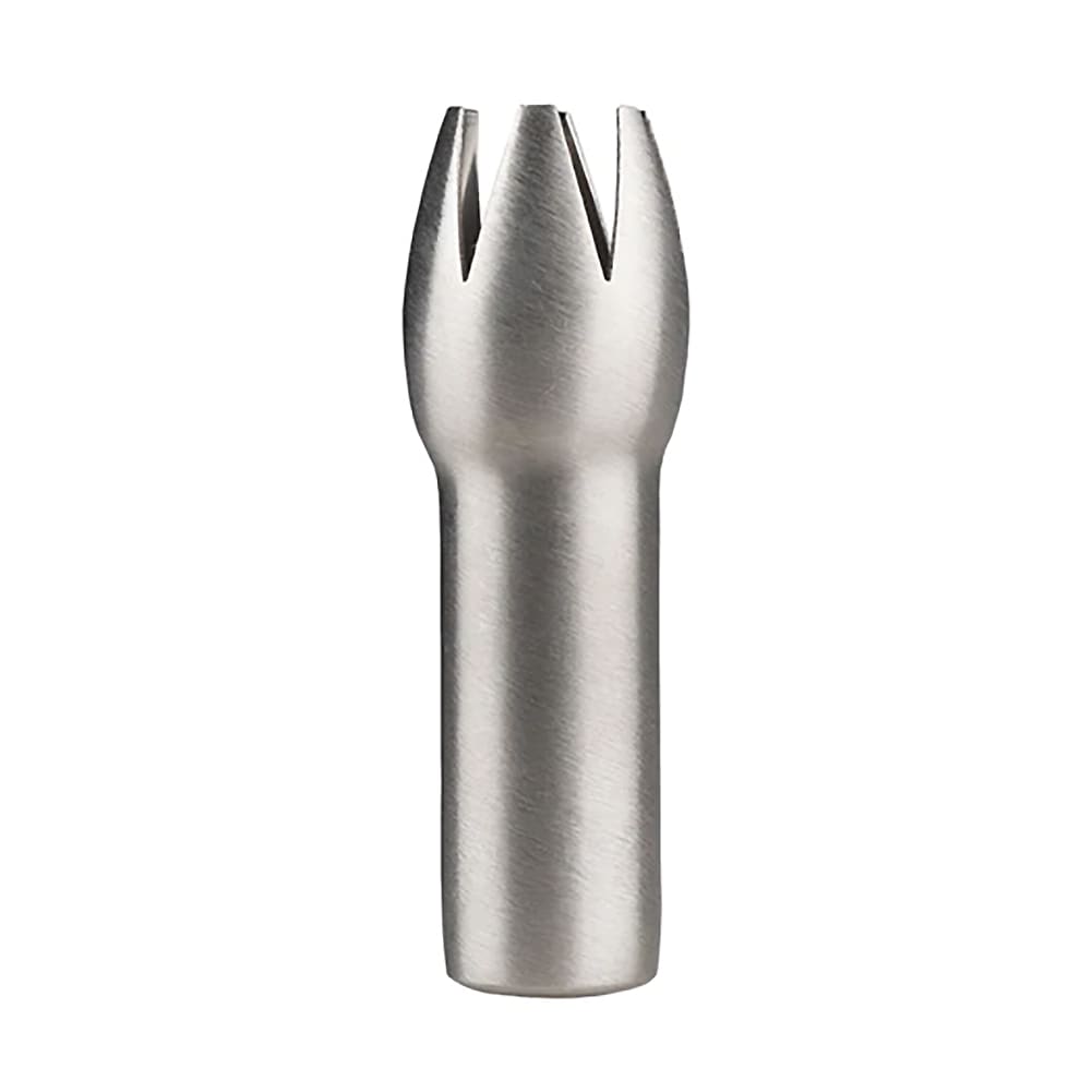 This brushed stainless steel tulip decorator tip fits the 166101 whipped cream dispenser.