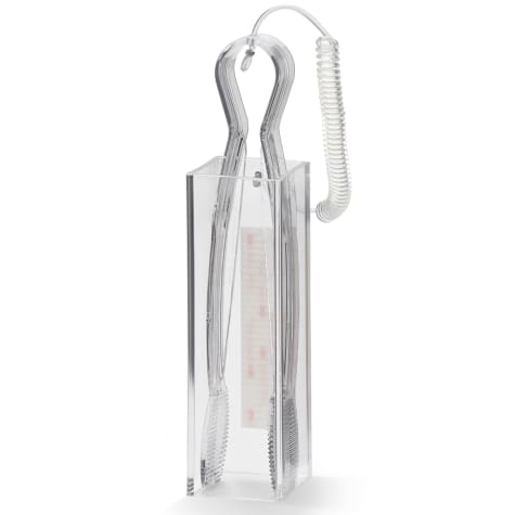 This Vollrath tong set is great for use at food service counters and come with a holder and tether. The tether and holder has a re‐closable tape fasteners allow fast durable mounting and helps keep these tongs where you need them. These polycarbonate tongs are durable and unbreakable.