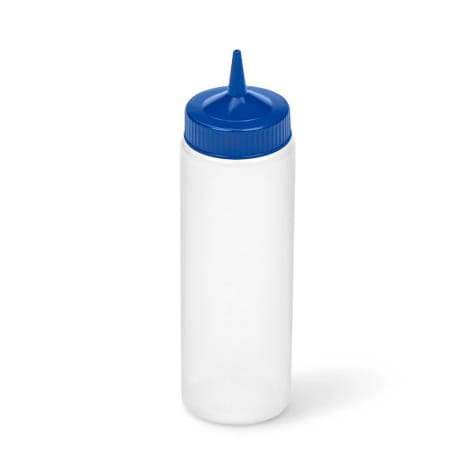 This 24 ounce squeeze dispenser from Traex® is great for use in restaurants, diners, cafeterias or break rooms. It features a clear bottle with a single tip blue cap. It is made from durable polyethylene and you can identify the contents.