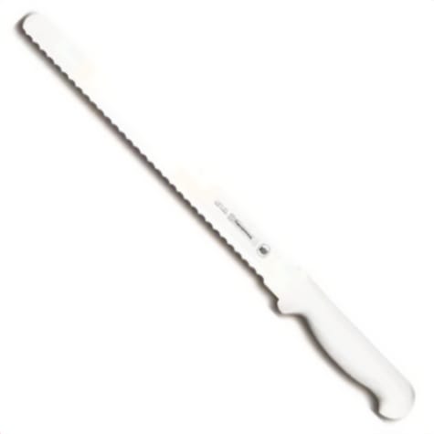 This 12" wavy edge slicer knife from Tramontina sold by Darling features a white, polypropylene handle. This knife has a stainless steel blade that is perfect for use in any kitchen.