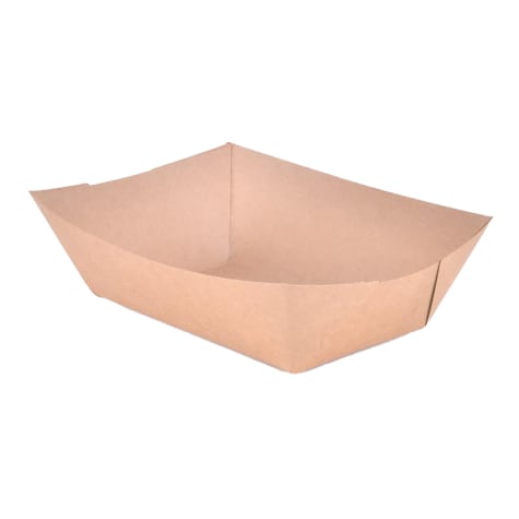 This paper food tray holds up to 5 lbs of hot or cold foods. These rectangular, single-use trays are made from premium kraft paperboard and are perfect for serving full meals, including sandwiches and chips, salads, hamburgers and fries and more!