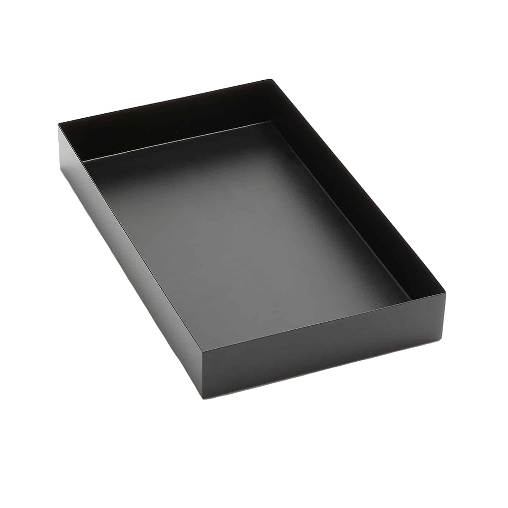 This rectangular market tray from American Metalcraft measures 15 inches by 9 inches with a 2-inch height. Made from high-quality brushed stainless steel, it features a sleek design and a black finish. This tray is dishwasher-safe, making it ideal for displaying meats, salads, or pastries in a stylish and contemporary manner.
