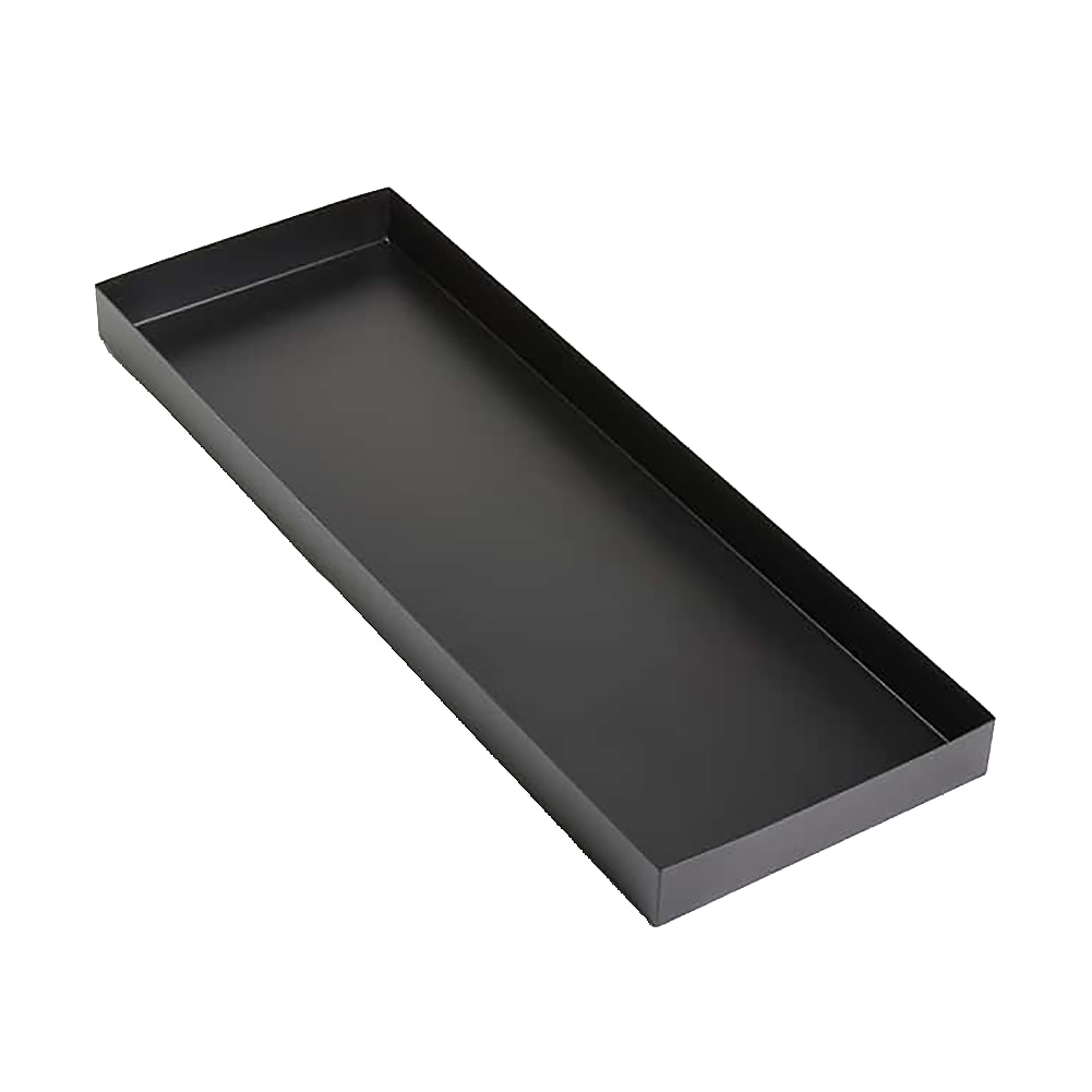 This rectangular market tray from American Metalcraft measures 29-3/4 inches by 8-1/2 inches with a 2-inch height. It features a simple yet durable black design, ideal for serving pasta, veggies, salads, and more. The tray is dishwasher-safe and complements the Black Twilight collection for a cohesive presentation.