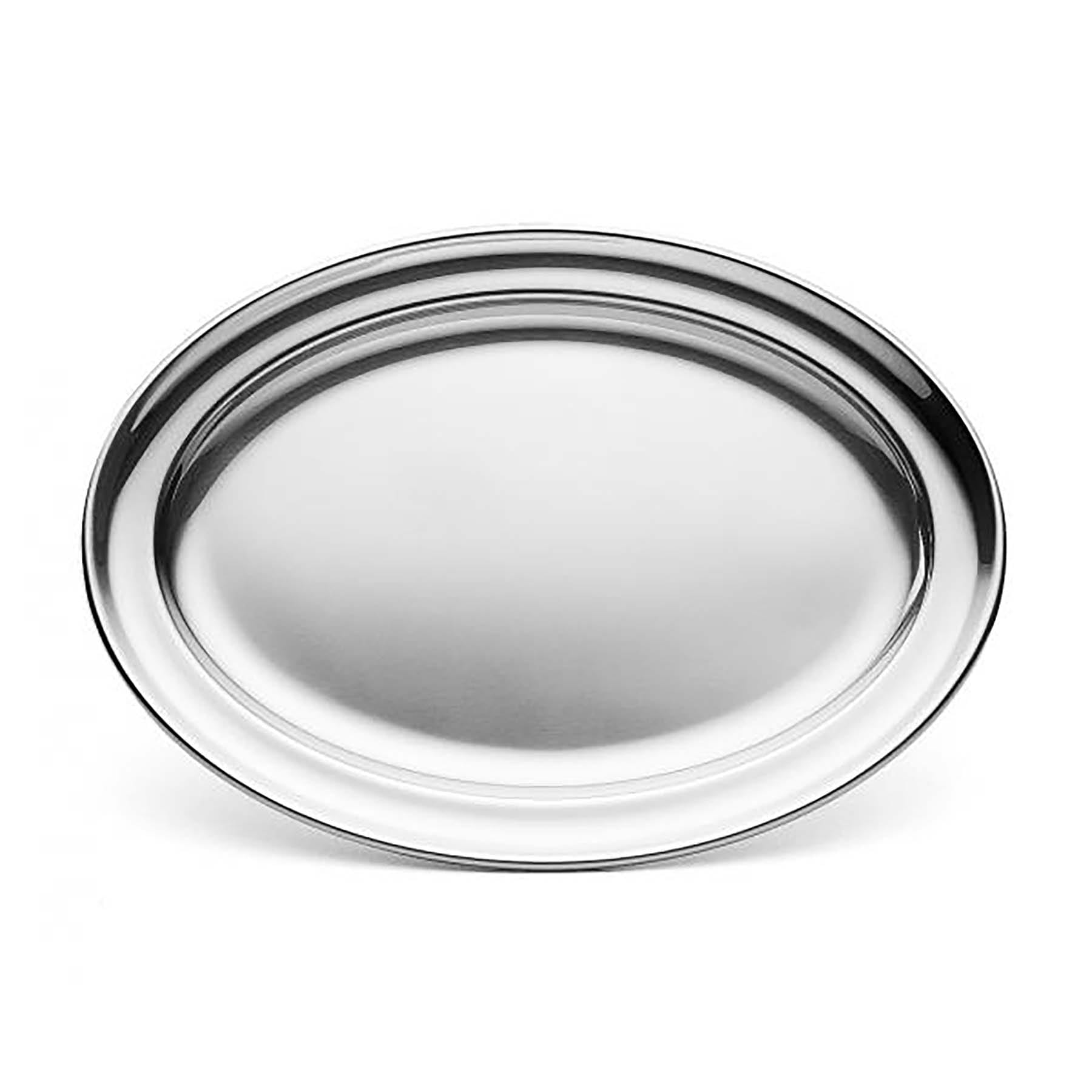 This beautiful oval tray is made from 18/10 stainless steel with rolled edges for added strength and durability. Perfect for bar, serving or food display!