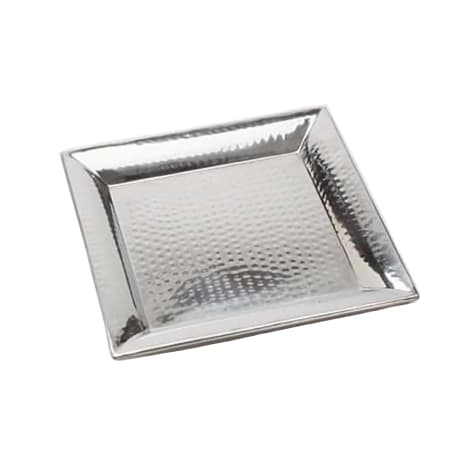 This shining 14" square hammered stainless steel tray is perfect for your entrees, salads, hors d’oeuvres and desserts! Trendy and modern, elevate the look of your entire presentation by pairing this tray with the natural look of wood.