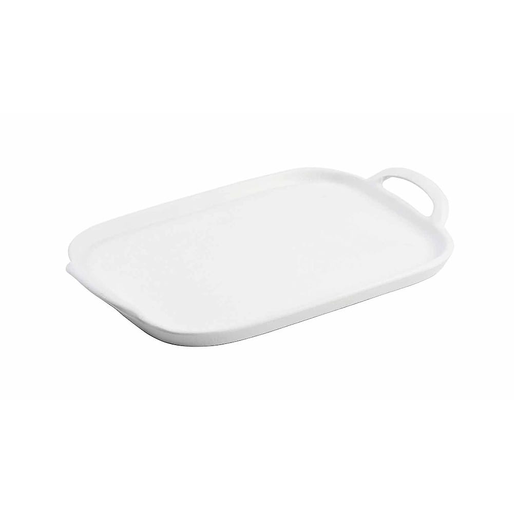 This TableCraft 14" x 10" Rectangular Serving Tray is made of white melamine with a faux cast iron finish. This tray is temperature safe up to 212°F and dishwasher safe, offering a stylish and practical solution for presenting hot and cold foods in restaurants and catered events.