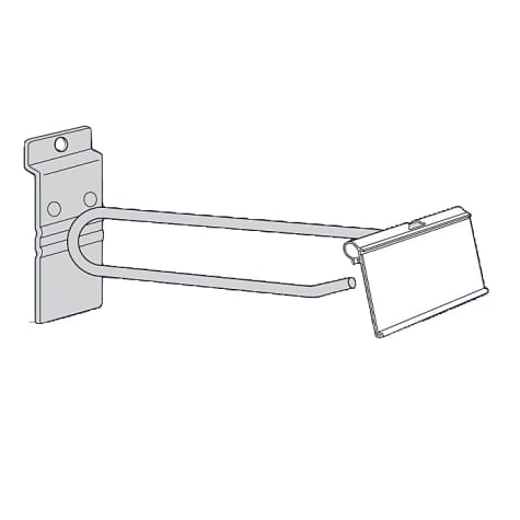 This Flip Scan Slatwall Hook from Trion® fits slatwall and slatwire and the broad flat metal back plate of the hook spreads the weight load and protects your display surface.