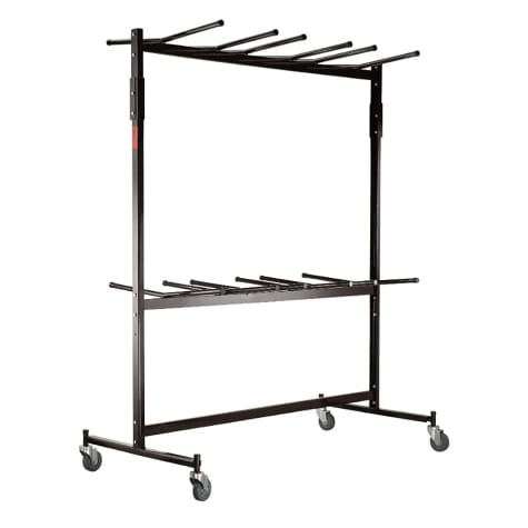 The 84 Series Double-Tiered Hanging Chair Dolly from National Public Seating is a great choice for saving time and space! Quickly set up, take down and store as many as 84 steel or plastic folding chairs with this durable, tubular steel, easy-to-assemble unit that comes with a brown powder-coated paint finish. Upward angled rods secure chairs with gravity in addition to end-caps. Four heavy-duty thermoplastic rubber 4 swivel casters allow you to move the dolly with ease, even through doorways. Each caster boasts a 330 lb. weight capacity for a total of 1320 lbs. Extension-bar kit for the 84 Series double-tier hanging chair dolly to raise the height enough to accommodate the NPS 3200, 1100 and 600 higher-backed chair series.