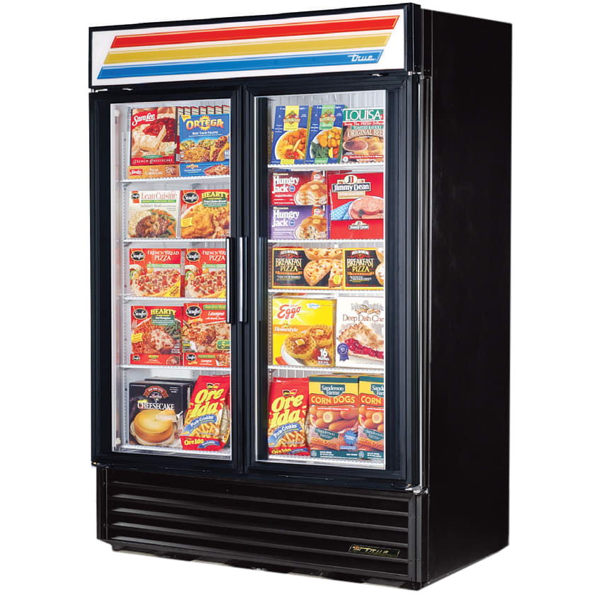 True GDM-49F-HC~TSL01 / BLACK 2 Glass Swing Door Freezer Merchandiser