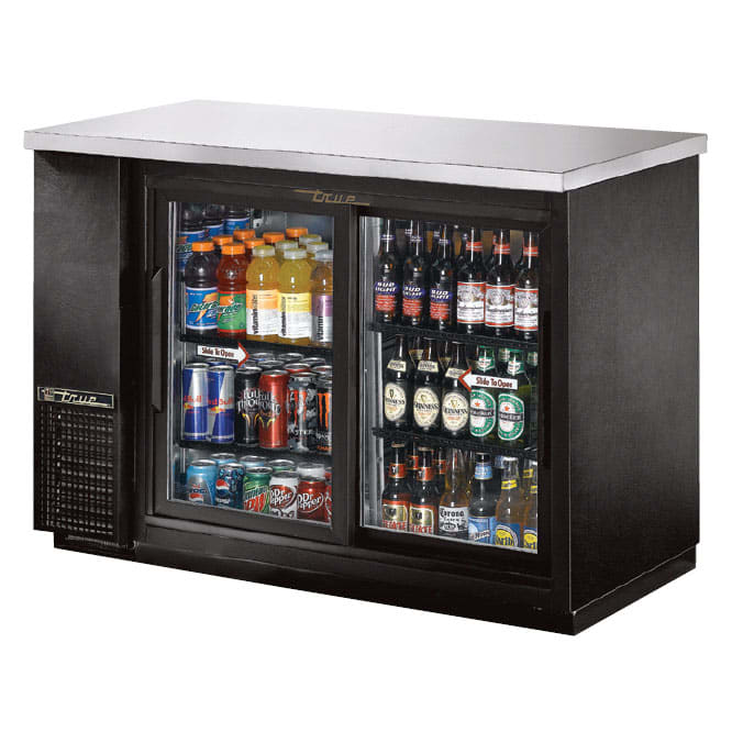 True TBB-24-48G-SD-LD Black Glass Door Back Bar Cooler For 48 6-Packs