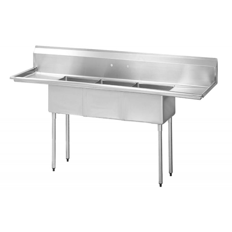 Turbo Air TSA-3-14-D2 S/S 3 Compartment Sink with 2 Drainboards