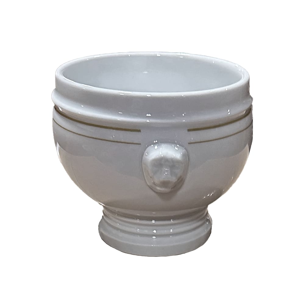 This 12 ounce Lion Head Soup Tureen is an exquisite piece of tableware that combines elegance with functionality. Crafted with meticulous attention to detail, this tureen features distinctive lion head handles, adding a touch of regal charm to your dining experience.
