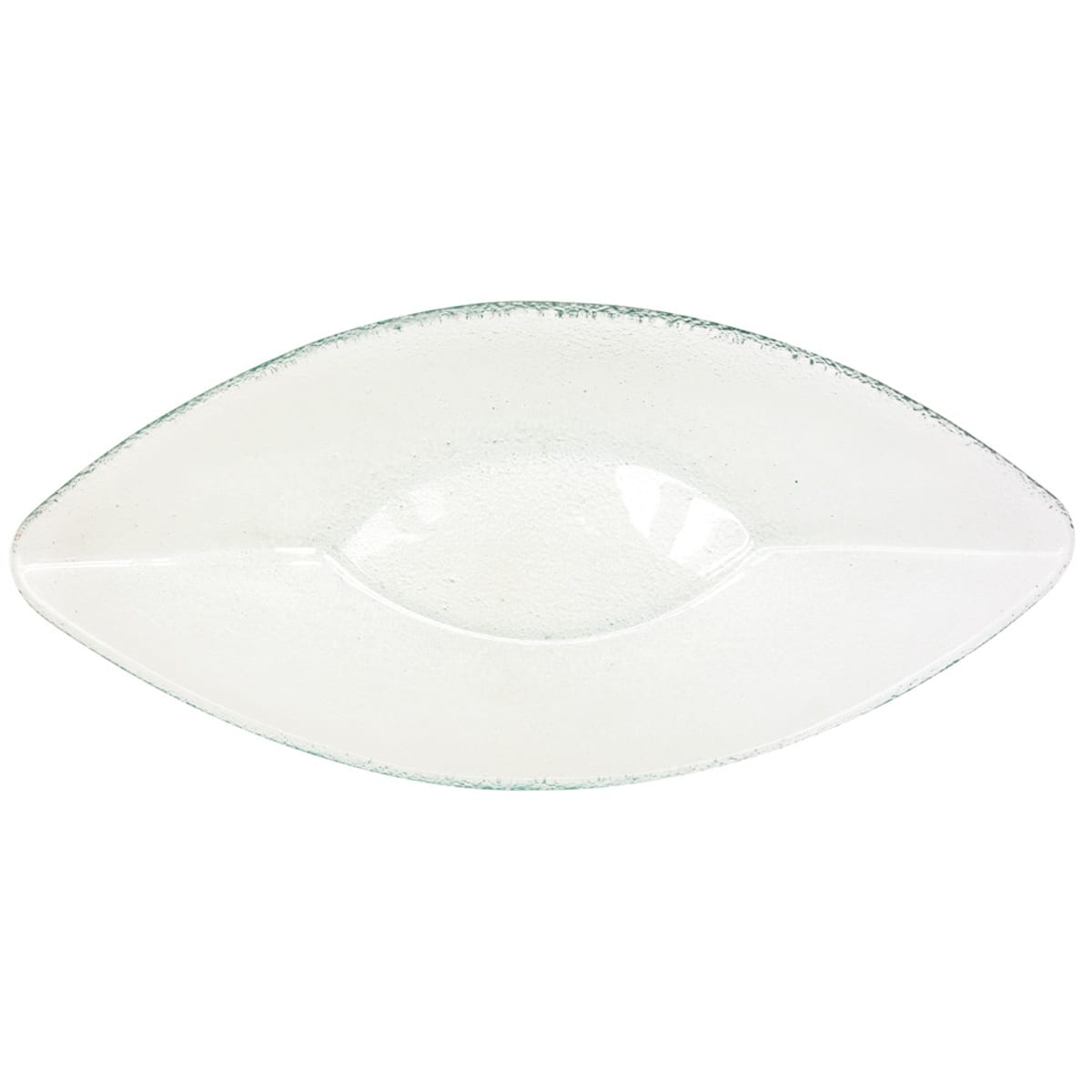 This elegant oval plate from Turgla is perfect for serving fruit, cheese and other appetizing snacks! This glass plate is 15 x 7" and the unique design will add an upscale look to your culinary display!