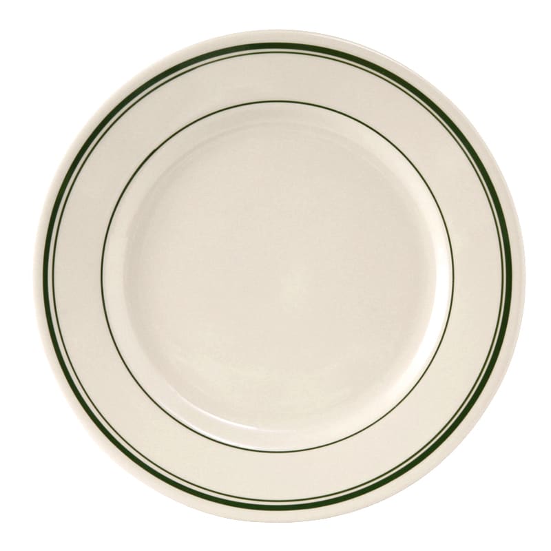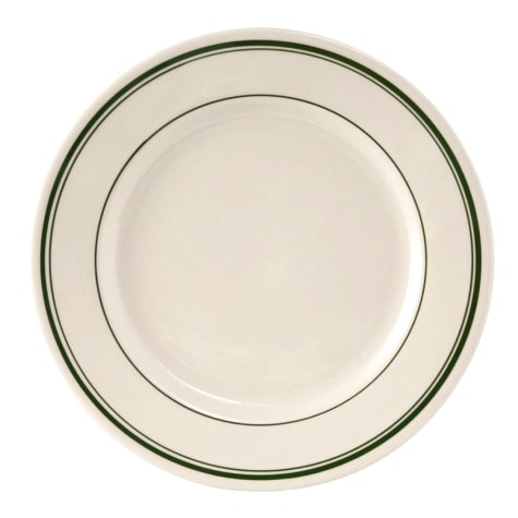 The green trim adds just a splash of color to this egg shell color plate. Idela as a side plate for breads or rolls.