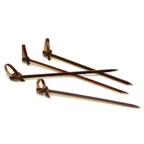 This red bamboo pick is perfect for small appetizers or mixed drinks at buffets, parties, or at your bar or restaurant.