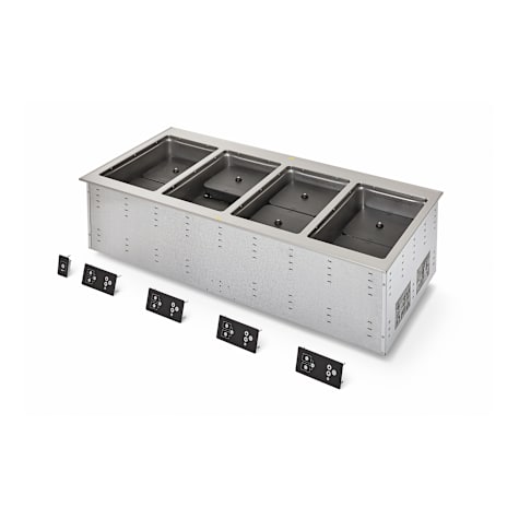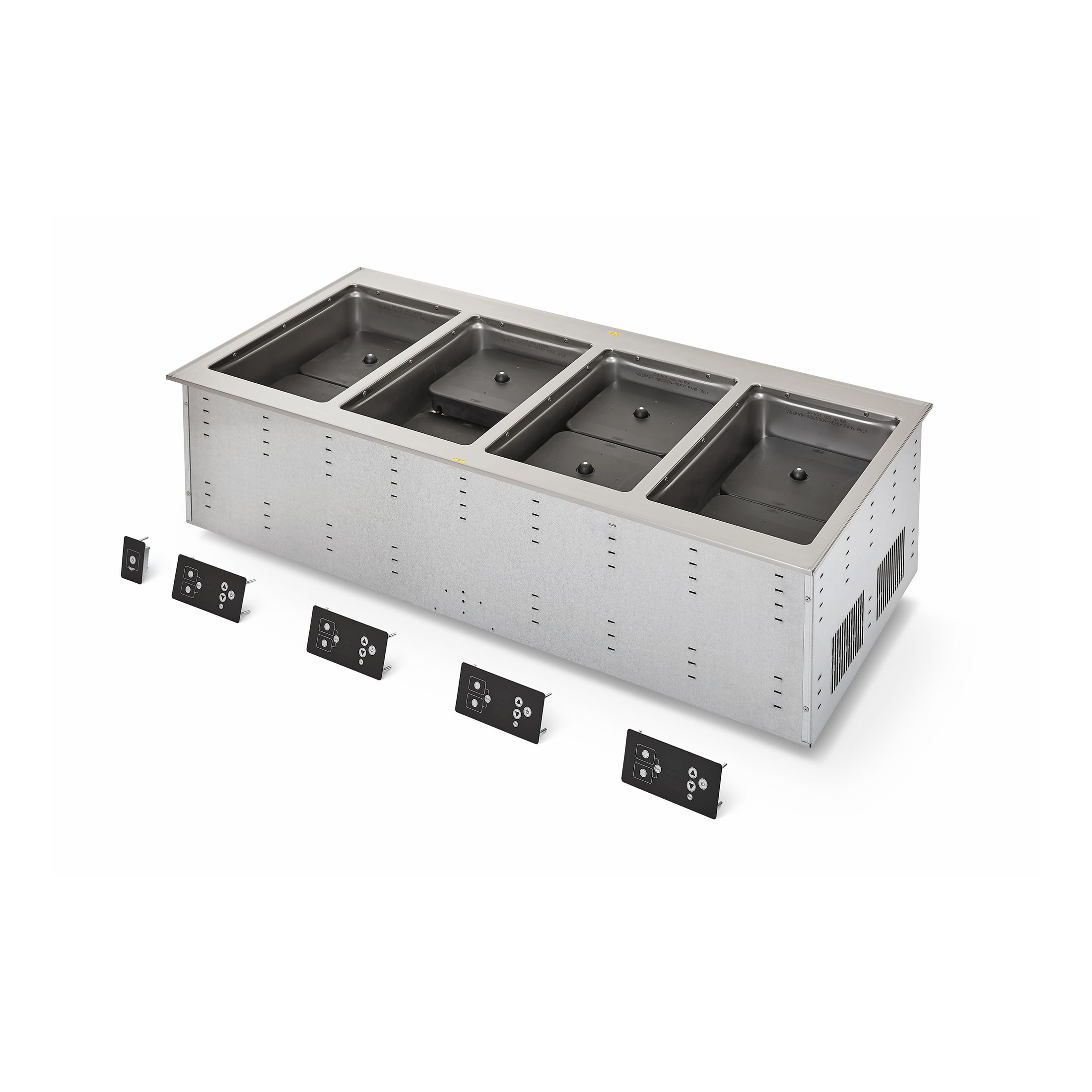 This drop-in hot well from Vollrath promises superior performance and convenience dur to reliable dry heat and powerful induction technology. This unit is made of durable stainless steel and insulated with high-density glass fiber. It is equally durable and high-performing, and the induction heat is more efficient and accurate than steam. Two induction zones per well with adjustable temperature controls ensure easy operation and versatile, precise heating. Without the need for water, steam, drains or flanges, this drop-in hot well offers effortless operation and delicious heated results. Thanks to the sleek design and cord-and-plug electrical, this hot well is easy to install, clean and maintain.