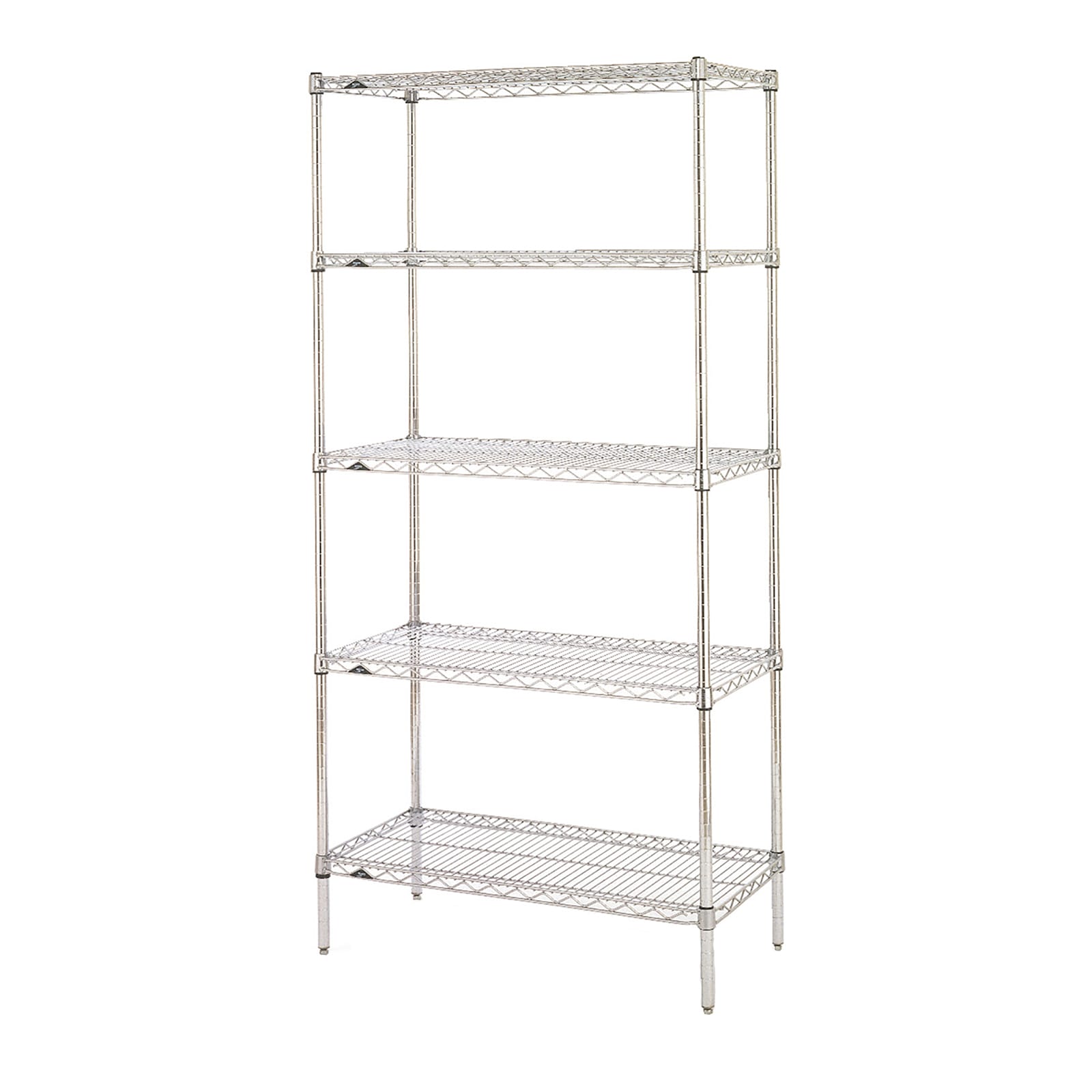 This Super Erecta starter set includes four posts (74P) and five Super Erecta shelves. Posts have a double groove visual guide feature every 8", circular grooves at 1", increments, and are numbered at 2" intervals for easy shelf adjustment.