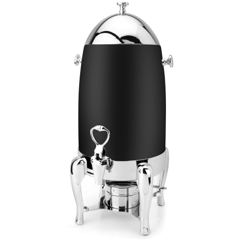 This Eastern Tabletop Ballerina 3 gallon coffee urn will add an elegant look to every buffet layout. Your coffee will stay hot to serve your guests for hours. Made using heavy gauge 18/10 stainless steel with a beautiful Xylo black finish and has a safety space to place the liquid fuel cell. Available stainless steel Drip Catch (Item 9450) slides under spigot.