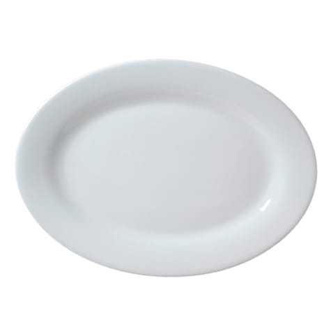 The Argyle offers many over‐sized pieces perfect for a buffet table. The main course will look more appetizing on this bright white serving platter from Vertex China.