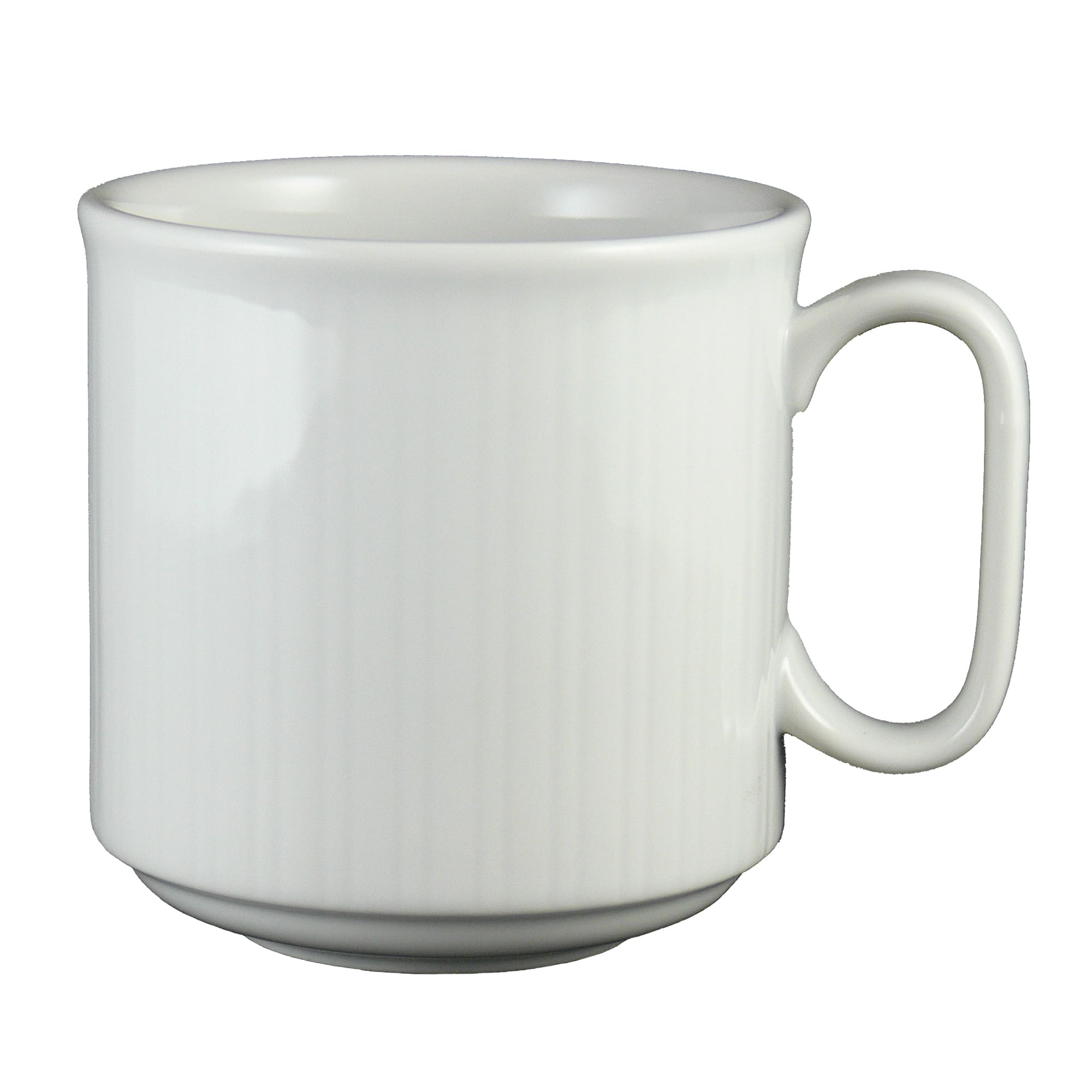 This Crystal Bay Undecorated stacking mug has traditional style and is perfect for any occasion. This mug is stackable to save space and is safe in the dishwasher or microwave.