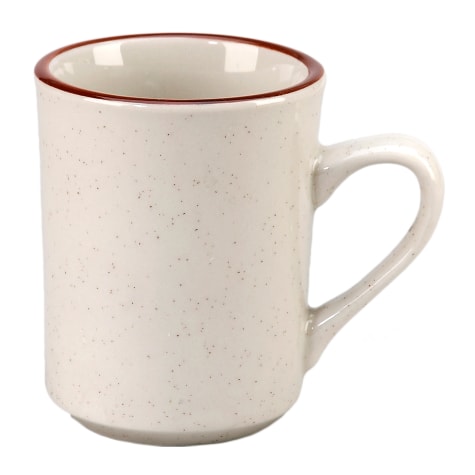 This 8 ounce brown speckled mug is just what you need for morning coffee or hot chocolate. The classic look includes brown trim with speckles and is a great replacement for plain white mugs. This mug is microwave and dishwasher safe for easy reheating and easy cleaning.