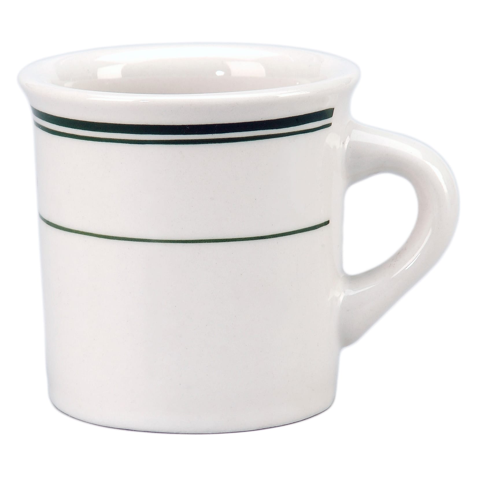 This 8 ounce mug holds plenty of your favorite coffees, plus the simple green stripe is an attractive addition to your table. Can be used with matching or plain white china.