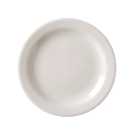This narrow rim plate is part of the Vista collection from Vertex China. This simple white design is great for every occasion.