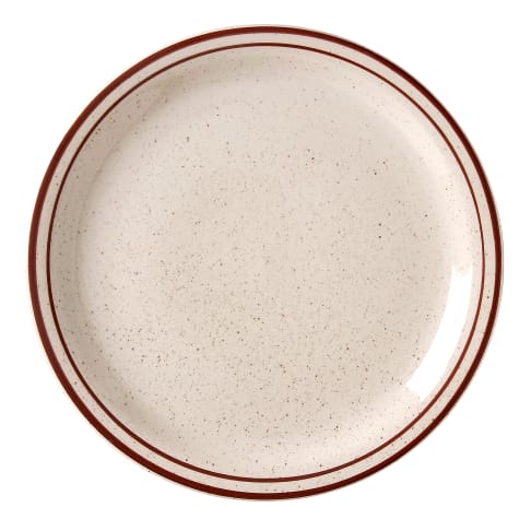 This brown speckled plate is just the right size for serving a small salad or a slice of chocolate cake. Using the Caravan collection adds a traditional look to your table.