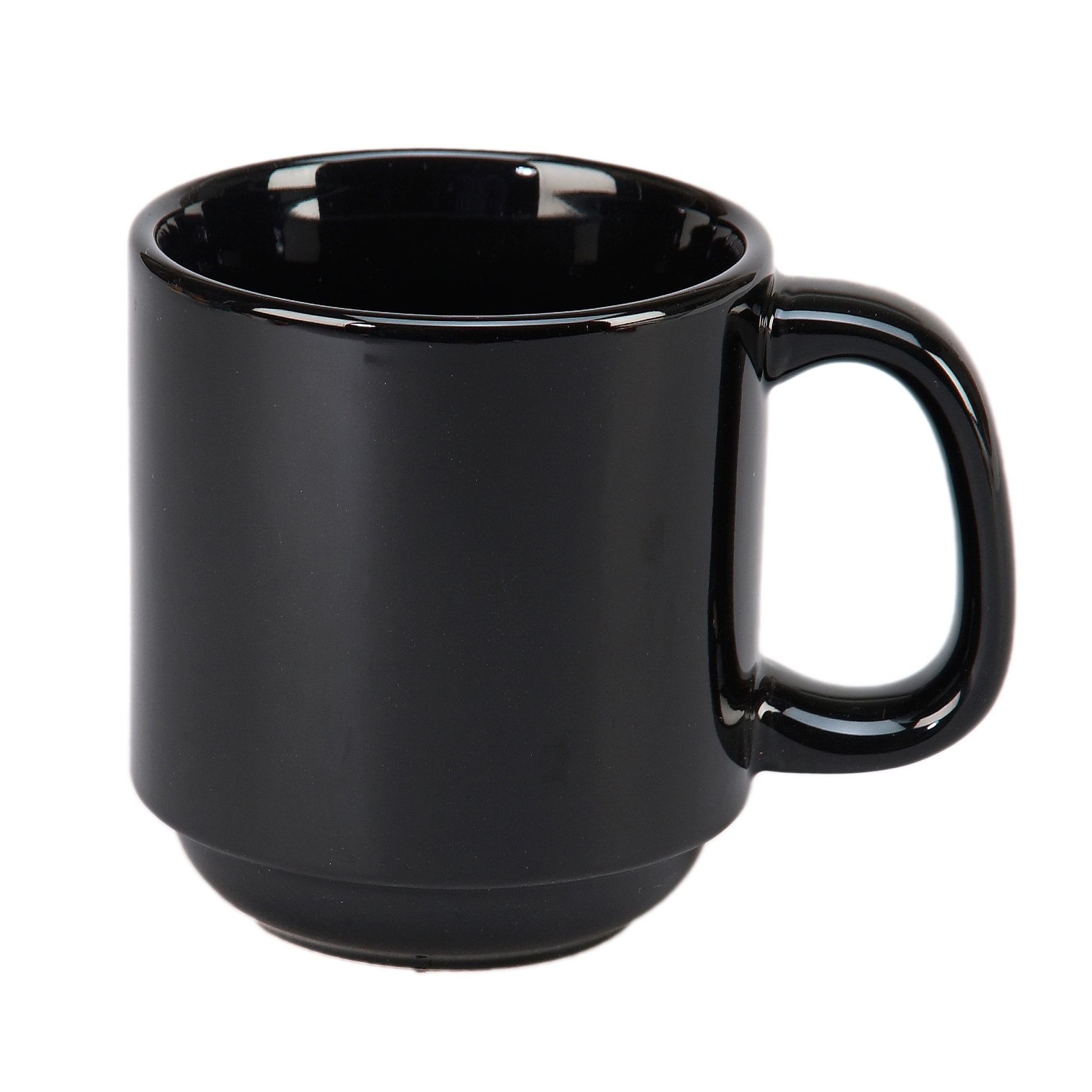 Black china is classic and stylish and great for a hot cup of coffee. This 10 ounce black stackable mug is also quite affordable.