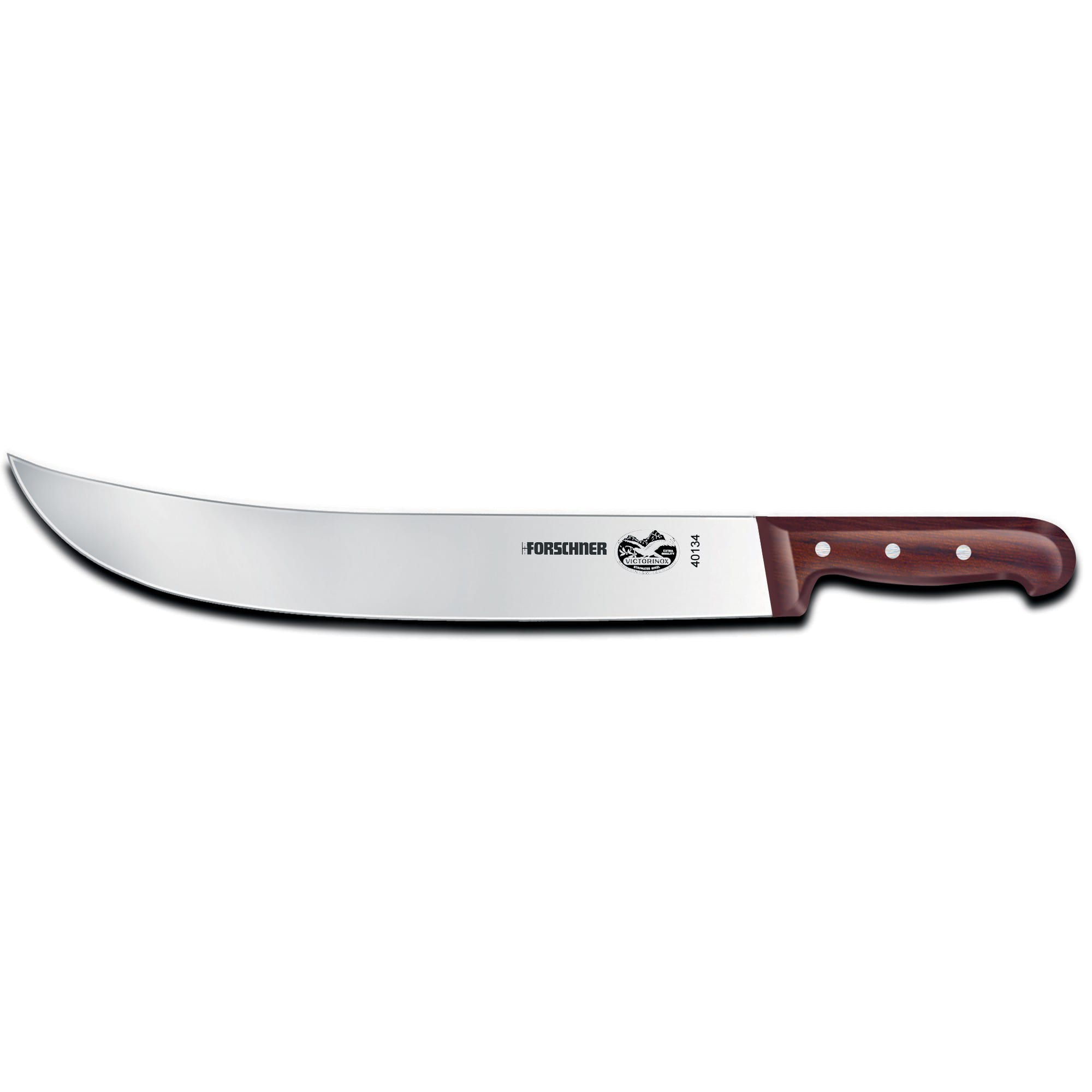This Victorinox Cimeter Knife can be used for butchering large pieces of meat, or for slicing roasts, turkeys, and more. It has a 14" blade and is finished with an ergonomic natural wood handle.