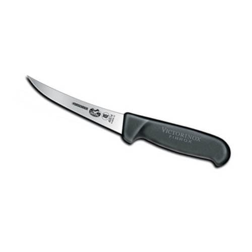 This Victorinox Fibrox® Pro Boning Knife can be used to separate meat, poultry, or fish from the bone. It features a 5" curved blade that is semi-stiff.