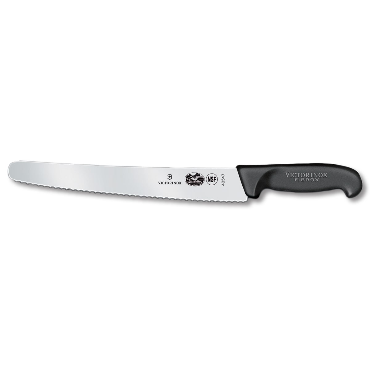 This Victorinox Fibrox® Pro Baker's Blade Bread Knife comes in a 10.25" size and can be used to slice sandwiches, tomatoes, vegetables, and fruit.