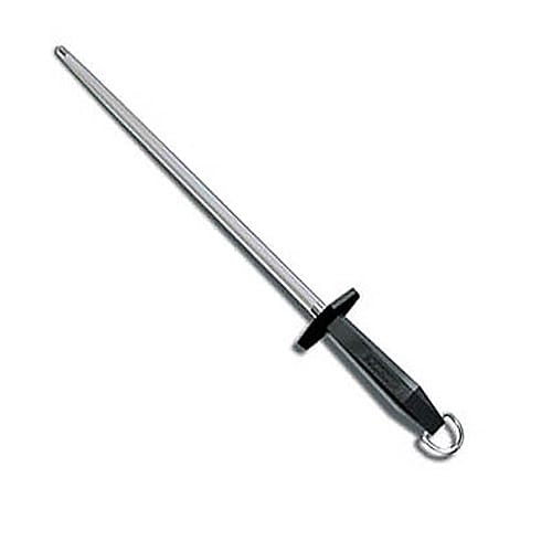 This Victorinox Sharpening Steel is a 14" size and can be used to keep knives in great working shape. It is finished with a black plastic handle and has a hangtag for easy storage.