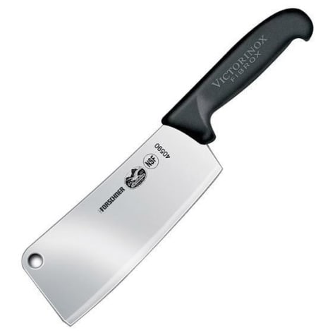 This Victorinox Restaurant Cleaver can be used in restaurants or butcher chops to hack through bones or crush foods such as garlic. It has a 7" x 2.5" blade and is finished with a black handle.