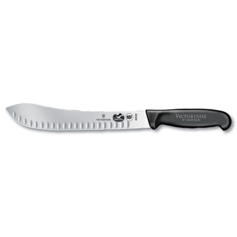 This Victorinox Fibrox® Pro Butcher Knife can be used to separate cuts of meat. It has a 10" granton blade with a straight edge and is finished with an ergonomic, non-slip handle.