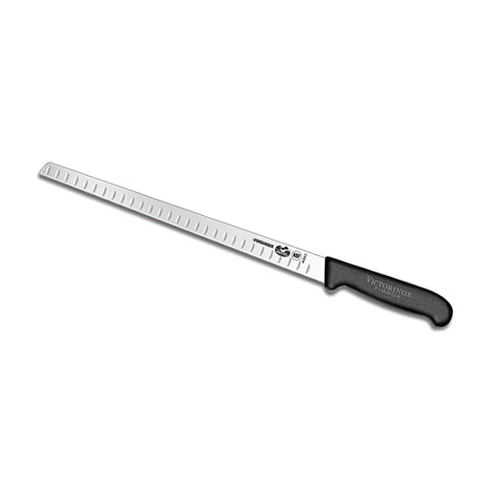 This Victorinox Fibrox® Pro Slicing Knife has a 12" flexible, straight edge granton blade and is great for slicing meats, cakes, sandwiches, and more. It is especially good for salmon.