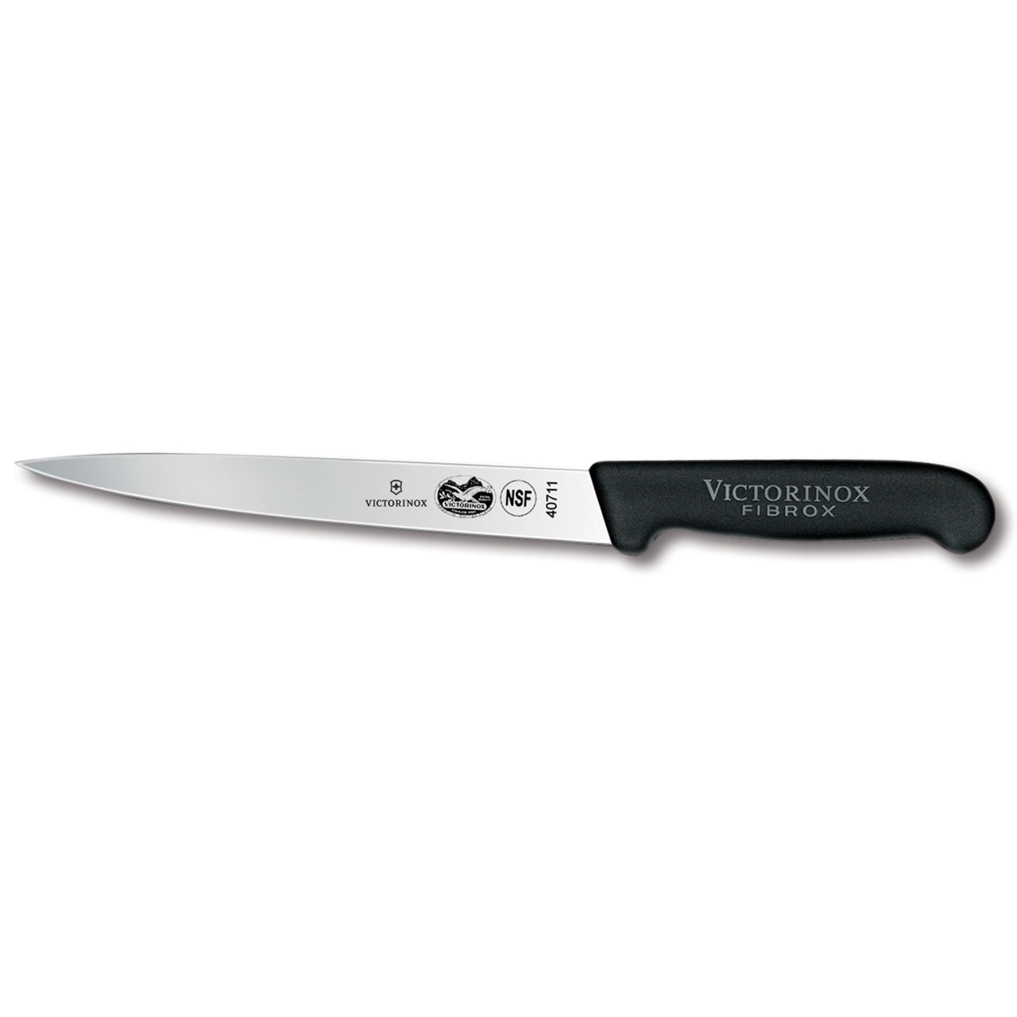 This Victorinox Fibrox® Pro Fillet Knife can be used to remove the skin or bones from every type of meat or fish. It has a flexible, straight edge blade and is finished with an ergonomic, non-slip handle.