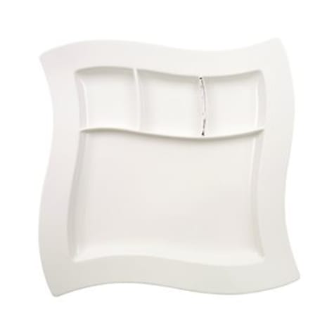 NewWave dinnerware features and gentle wave design for a modern look. The white porcelain body is durable and chip resistant.