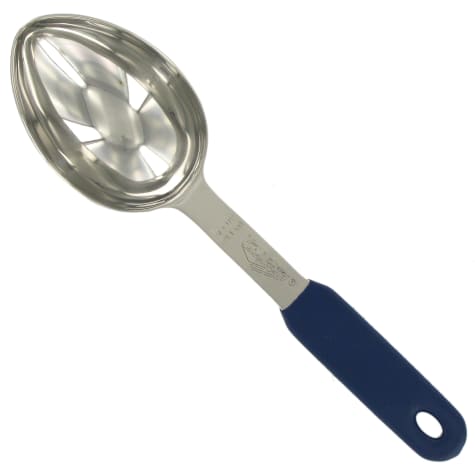 This 1/4 cup blue colored measuring scoop from Vollrath® is a must have for every kitchen! It is made from heavy-gauge stainless steel and is ideal for batters and thick food product.