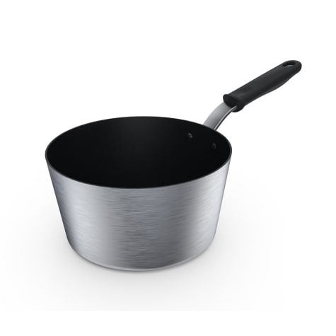 This Vollrath® Wear-Ever® Tapered Sauce Pan has an 8.5 quart capacity and is made out of durable 11 gauge, 3004 aluminum with a double-thick rim and bottom. It features an ergonomic silicone handle that is rated at 450°F. An EverTite! Riveting System provides a lifetime warranty against loose rivets. This sauce pan is NSF Listed and made in the USA. Covers sold separately.