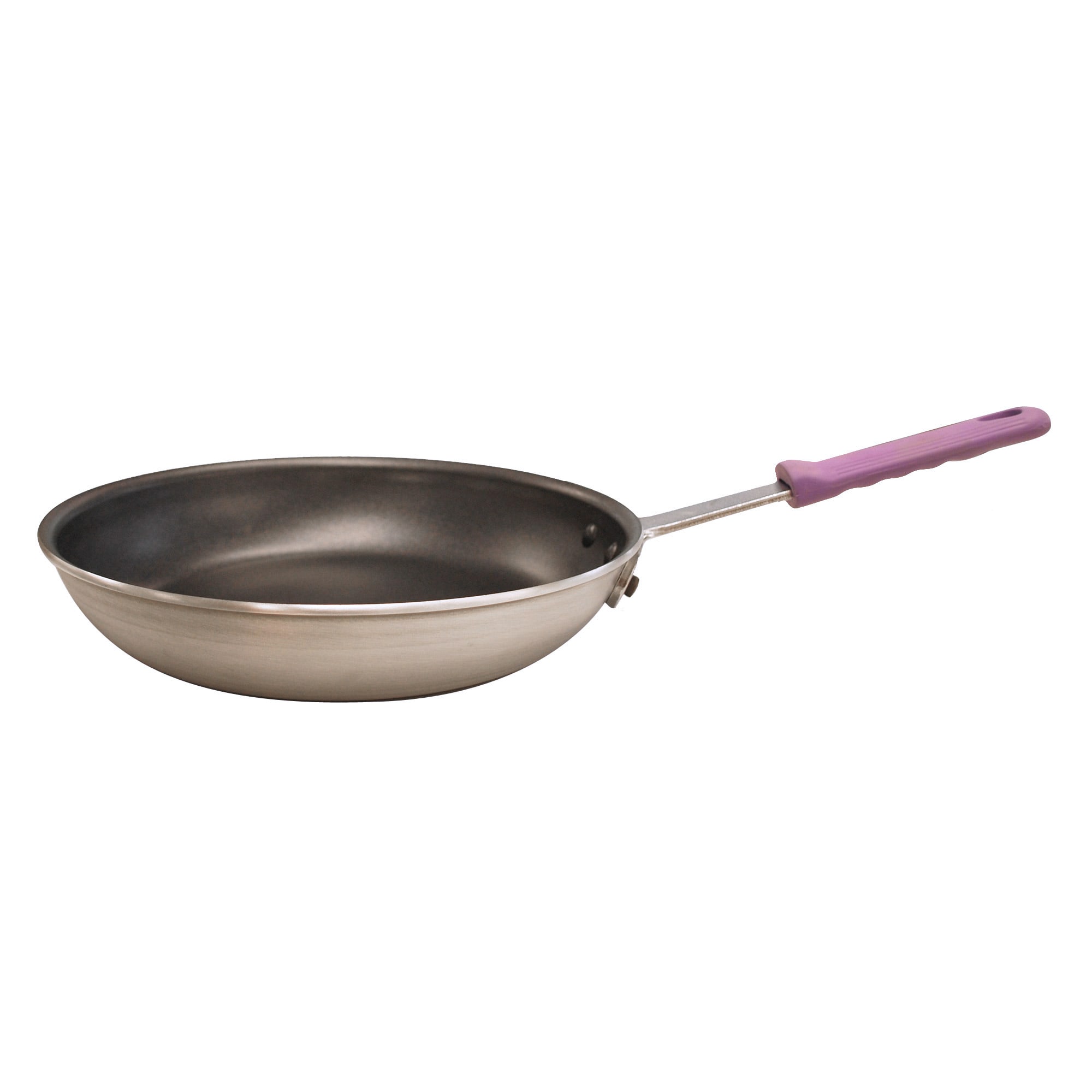 This Wear‐Ever® fry pan from Vollrath® is NSF listed and features SteelCoat x3! interior for exceptional durability. It has a top diameter of 10"" and a bottom diameter of 7‐5/8"" and includes a purple handle for non‐allergen cooking needs.