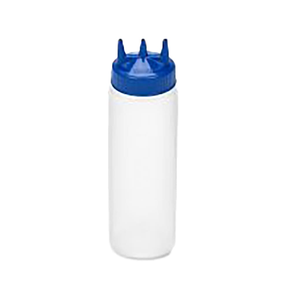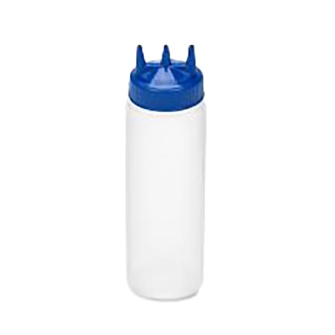 This clear squeeze dispenser from Traex® has a capacity of 24 ounces and features a blue cap with three tips that allow you to portion condiments quickly. The clear bottle lets you identify contents and track fill levels at a glance.